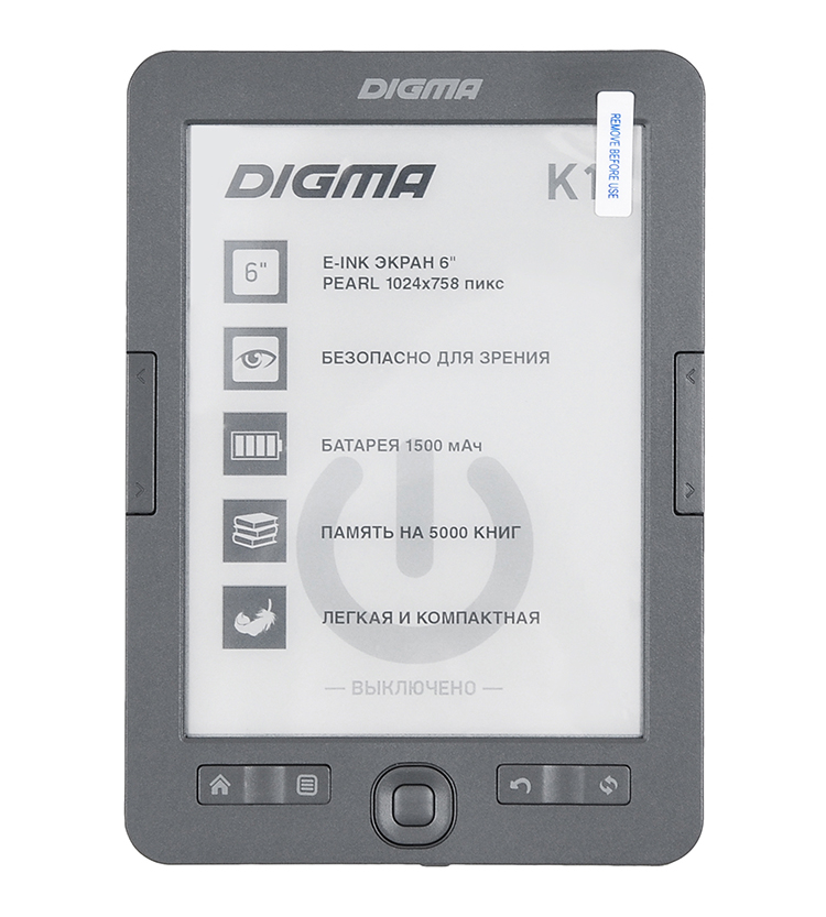 Leitor de e-book de seis polegadas DIGMA K1. O dispositivo prático é uma minibiblioteca eletrônica de apenas 150 gramas. A configuração do gadget é simples e funcional. A tela E-link HD Pearl não só oferece um bom nível de contraste, mas também garante a segurança da visão mesmo após uso prolongado. A resolução de 1024 × 758 pixels e 16 tons de cinza fornecem um grau decente de renderização.