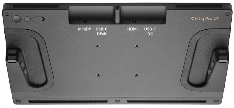 O Cintiq Pro 17 menor não recebe uma porta USB Tipo A e o restante de seus conectores está localizado abertamente.