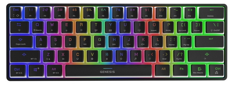 As dimensões do teclado Genesis Thor 660 TKL, sem teclado numérico, são 293 × 102 × 39 mm. A novidade tem 61 teclas, incluindo 13 multimídia habilitadas para macro. Para operação sem fio, o aparelho possui uma bateria de 3000 mAh.