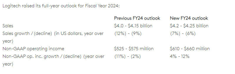 As vendas no trimestre encerrado em 31 de dezembro foram de US$ 1,26 bilhão, abaixo dos US$ 1,27 bilhão no mesmo período do ano anterior. A fabricante de teclados, mouses de computador e webcams está lutando contra a redução dos gastos dos consumidores e das empresas. No final do exercício financeiro de 2024, a previsão de um declínio nas vendas é agora de 6-7% – para 4,2-4,25 mil milhões de dólares; a empresa havia previsto anteriormente quedas anuais nas vendas de 9 a 12%. Ao mesmo tempo, diz a previsão, o lucro operacional (não-GAAP) para o mesmo período crescerá entre 4-12%, para US$ 610-660 milhões – anteriormente a empresa esperava US$ 525-575 milhões.