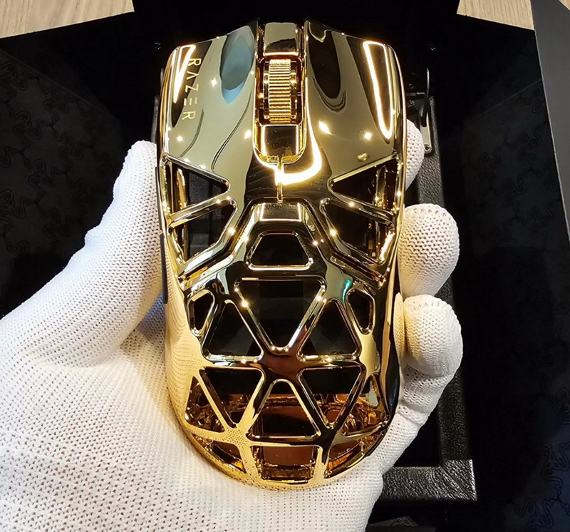 A versão padrão do Viper Signature Mini é oferecida pela empresa por US$ 280. Seu peso inicial é de apenas 49 gramas. O mouse provavelmente é banhado a ouro sobre um corpo de liga de magnésio. Este revestimento definitivamente adiciona peso e reduz a usabilidade do mouse. Mas é óbvio que o proprietário está mais preocupado em como vai caber as cortinas com costura dourada, o vaso sanitário dourado, ou como ficará no fundo do mesmo PlayStation 5 dourado.