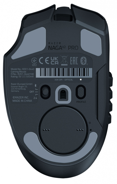 O Razer Naga V2 Pro pode operar em três modos: cabeado através de um cabo USB Type-C, assim como sem fio HyperSpeed ​​(2,4 GHz) ou Bluetooth Low Energy (BLE). No modo sem fio HyperSpeed, a carga da bateria do manipulador é suficiente para cerca de 150 horas de operação, no modo BLE – até 300 horas (sem luz de fundo). A novidade é compatível com as estações de carregamento Razer Mouse Dock Pro e Wireless Charging Puck. O Razer Naga V2 Pro mede 119,5 x 75,5 x 43,5 mm e pesa 134 gramas sem cabo e dongle sem fio.