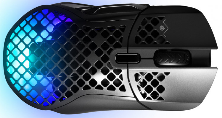 No coração do Aerox 5 Wireless está o mesmo sensor óptico SteelSeries TrueMove Air com uma faixa de sensibilidade de 100 a 18.000 CPI, uma taxa de aceleração máxima de 40G e uma taxa de polling de 1000Hz. Como o modelo acima, o Aerox 5 Wireless possui iluminação RGB de três zonas.