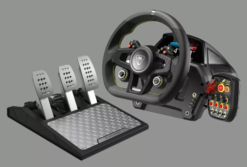 Turtle Beach está expandindo sua linha VelocityOne de controladores de jogos de simulação. Desta vez, os desenvolvedores apresentaram o sistema simulador de carros VelocityOne Race, composto por volante e pedais, compatível com computadores Windows e consoles Microsoft Xbox.