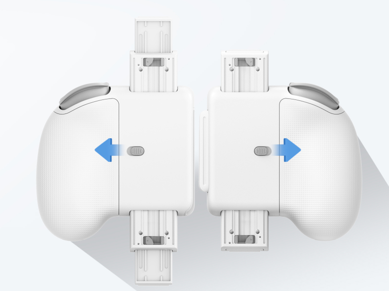 As partes direita e esquerda do controle podem ser usadas juntas ou em modos separados, eliminando a dificuldade de conectar o controle a dispositivos móveis mais largos.