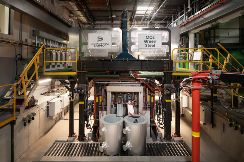 A Boston Metal desenvolveu um método sem carbono chamado eletrólise de óxido fundido (MOE). Esse processo de produção de metal envolve a mistura de minério de ferro com um eletrólito em um reator e depois seu aquecimento a cerca de 1600°C usando eletricidade em vez de coque. Como resultado, os elétrons quebram as ligações no minério de ferro, purificando-o e liberando apenas oxigênio. Nenhuma molécula de dióxido de carbono é formada no processo.