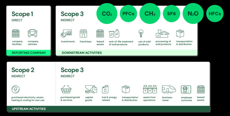 Três níveis (áreas) de responsabilidade das empresas pelas emissões de gases de efeito estufa