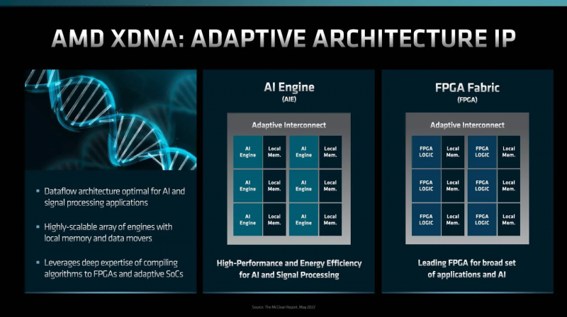 Outra maneira é usar chiplets baseados em blocos Xilinx. Esta iniciativa chama-se XDNA Adaptive Architecture. Os blocos de necessidade apareceram na série Versal em 2018, e agora a AMD pretende fornecer um mecanismo de IA semelhante aos laptops Ryzen: Phoenix Point (2023) e Strix Point (2024). A mesma tecnologia aparecerá no EPYC, mas o momento exato ainda não foi especificado, mas é relatado que chips com a arquitetura Zen 5 com novas otimizações para aprendizado de máquina serão lançados em 2024.