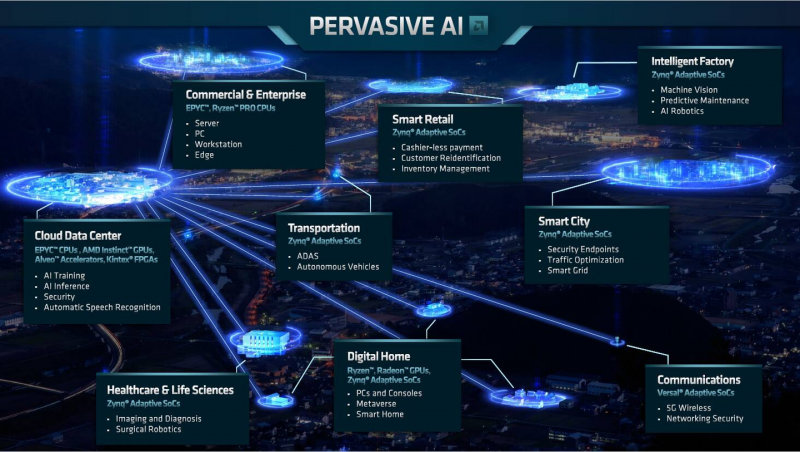 Cobertura de mercado de sistemas de IA e aprendizado de máquina com soluções AMD. Fonte: AMD
