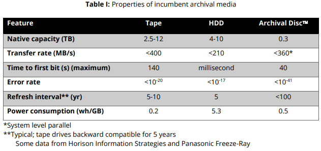 Pode parecer que a tecnologia de armazenamento de dados em mídia óptica está se tornando coisa do passado: o desenvolvimento estagnou em torno de 300 GB/disco, o que é incomparável com os mesmos drives de fita – cartuchos LTO-9, por exemplo, podem conter 18 TB de dados (com compressão de 45 TB) e desenvolvimentos experimentais promissores nos permitem falar sobre centenas de terabytes ou mesmo unidades de petabytes em um cassete.
