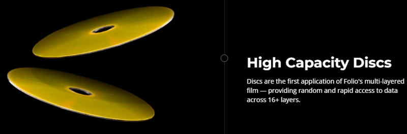 Mas isso não impede a Folio Photonics de trabalhar na criação de um concorrente digno de unidades de fita baseadas na tecnologia DFD. Mecanicamente, esse meio é muito mais simples, é mais difícil danificá-lo e não apresenta os problemas inerentes à fita com acesso aleatório aos dados e sensibilidade à influência eletromagnética. A empresa anunciou que alcançou um avanço no campo da criação de tais discos e sistemas de armazenamento a frio.