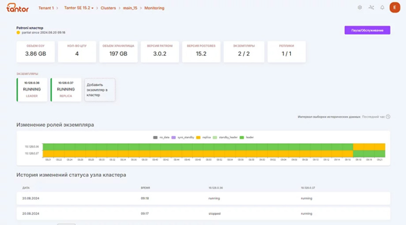 A plataforma Tantor possui um conjunto completo de funções para trabalhar com um SGBD em uma interface gráfica simples, fornecendo informações da forma mais conveniente. A solução é fácil de usar, além de alto desempenho, confiabilidade e tolerância a falhas.