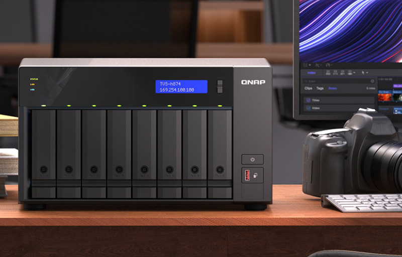 “A QNAP Systems na Computex 2023 anunciou dois novos modelos NAS no fator de forma “desktop” – TVS-h674T e TVS-h874T, construídos na plataforma de hardware Intel Alder Lake. Os dispositivos são projetados para instalar seis e oito unidades SFF ou LFF, respectivamente, com interface SATA-3, complementada por dois SSD M.2 2280 (PCIe 4.0 x4)”