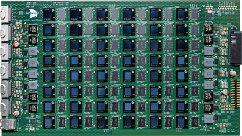 O maior sistema implantado pela SpiNNcloud até o momento inclui 30.000 chips (mais de 5 bilhões de elementos de computação) na Universidade de Dresden.