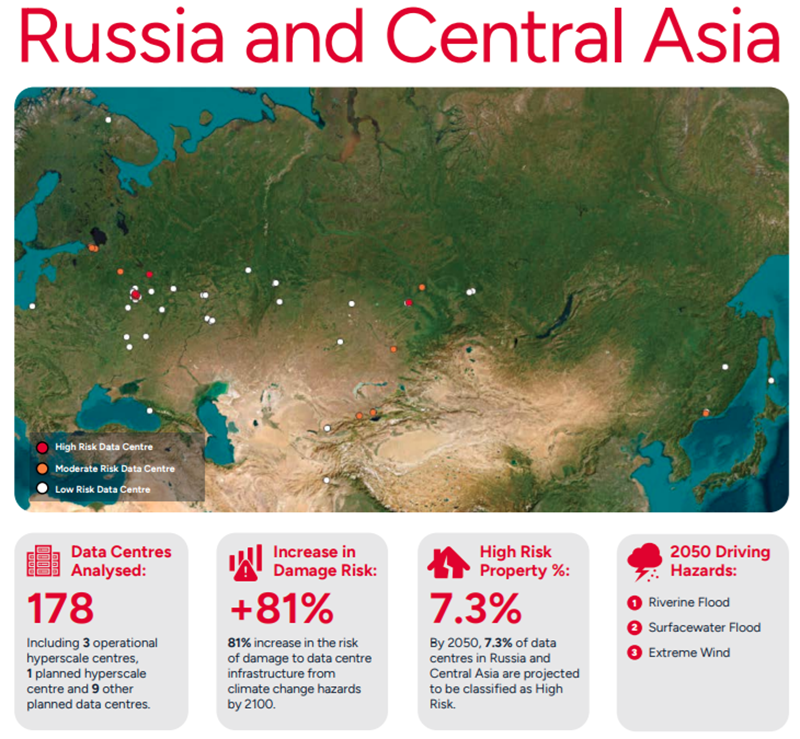 Os dados obtidos mostram que atualmente 6,25% dos data centers estão na zona de alto risco, 15,79% na zona de risco moderado e outros 77,9% na zona de baixo risco. No entanto, até 2050, a proporção de data centers na zona de alto risco aumentará para 7,13%, na zona de risco moderado – 19,6%, e outros 73,27% permanecerão na zona de baixo risco.