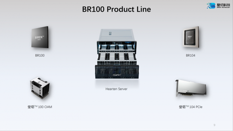 Essa não é a única novidade: a Birentech também tem um chip BR104 menos potente em seu arsenal. É duas vezes mais lento que o modelo mais antigo em todos os aspectos e carrega 32 GB de memória versus 64, mas ao contrário do BR100, ele usa um design monolítico em vez de chiplet. Com base nele, serão lançados aceleradores no formato PCIe com um TDP em torno de 300 W, enquanto a versão mais antiga estará disponível apenas como módulo OAM.