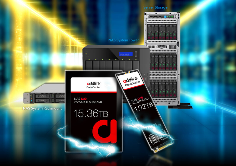 A Addlink Technology anunciou as famílias SSD D60 e D20, projetadas para uso em armazenamento conectado à rede (NAS). Os dispositivos são fabricados nos formatos M.2 2280 e SFF, respectivamente, e as interfaces PCIe 4.0 x4 (NVMe 1.4) e SATA-3 são usadas para troca de dados.