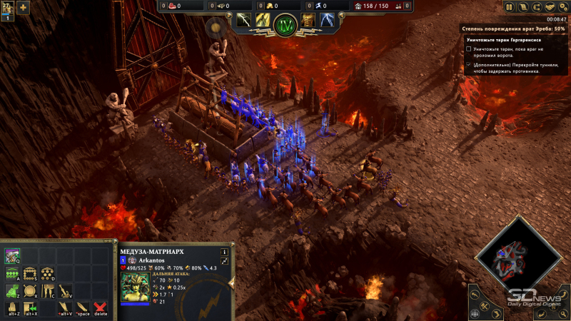 Eles nos deram a oportunidade de formar destacamentos em nosso próprio exército. Selecione as unidades necessárias, pressione Ctrl e um número – e agora, ao pressionar um botão, um grupo de guerreiros está imediatamente sob seu controle, e um clique duplo também centraliza a câmera nele. Os fãs do Spellforce irão apreciar isso. Ao mesmo tempo, gerenciar uma única multidão é inconveniente. Em primeiro lugar, o número máximo de lutadores aumentou em comparação com o original e a microgestão tornou-se mais complicada. Em segundo lugar, se você misturar muitos tipos diferentes de unidades em uma pilha, tentar alinhar em fileiras espalhará muito seu exército.
