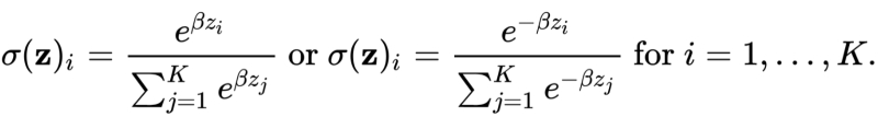 A fórmula para normalizar um vetor de K números reais usando a função softmax não é tão complicada (fonte: Wikimedia Commons)