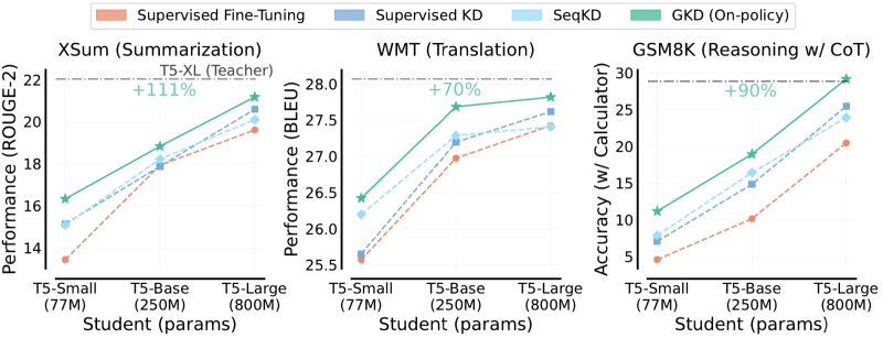 Essa discrepância entre o treinamento e as consultas reais, que o modelo destilado simplesmente não foi ensinado a lidar sozinho (já que foi treinado, enfatizamos mais uma vez, para corresponder as respostas de outra IA a uma amostra limitada de consultas), é chamada de “viés de exposição” e é combatida de uma forma completamente óbvia – estabelecendo feedback entre o aluno e o professor. No âmbito desta abordagem, o modelo do aluno fornece respostas às perguntas do conjunto de treinamento, mas nem sempre as compara com as de referência fornecidas pelo professor: às vezes, essa tarefa é confiada ao modelo do professor. A avaliação dessas respostas independentes é usada para ajustar os pesos da rede neural do aluno, de modo a, finalmente, chegar a uma determinada avaliação obviamente alta do professor, mantendo ao mesmo tempo uma amplitude suficiente de variabilidade em suas respostas (o método de destilação baseado em uma política determinada externamente; destilação dentro da política).