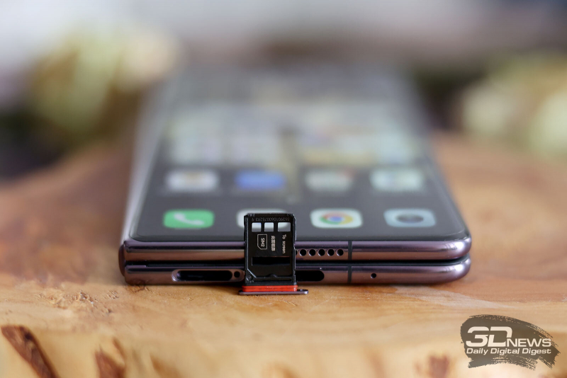 HONOR Magic V2 possui dois slots para cartões nano-SIM; você pode usar eSIM em vez de um deles. Existe suporte para redes 5G (as bandas estão na lista de características, se esta for uma informação relevante para você), com LTE a ordem é alta – a velocidade é alta, todas as bandas necessárias são suportadas.