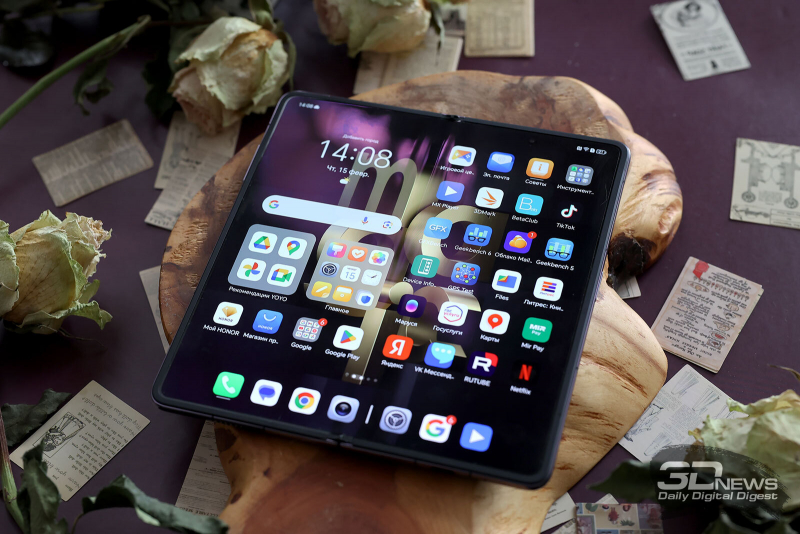 O HONOR Magic V2 conseguiu o principal – destacar-se no cenário geral dos smartphones dobráveis, onde as marcas não surpreendem há algum tempo, simplesmente construindo gradativamente seus músculos e considerando seu dever cumprido apenas pelo próprio fato de lançar um dobrável Smartphone. Aqui, tendo um design familiar e proporções mais ou menos padronizadas para sua classe (especial), o gadget é diferente – tornou-se o mais fino, e por uma margem enorme. Isso permite que ele receba manchetes de destaque e se torne o smartphone dobrável mais conveniente quando usado quando dobrado – uma tela externa de formato mais ou menos familiar ajuda aqui.