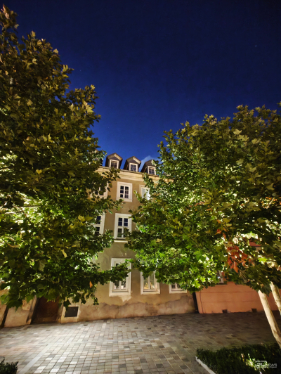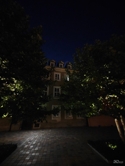 Mas a diferença entre as fotos com e sem o modo noturno é significativa. Isso é especialmente verdadeiro para as câmeras grande-angular e teleobjetiva — o módulo principal faz um bom trabalho em fotos noturnas mesmo sem esse modo. Com o modo noturno ativo, as fotos ficam mais brilhantes, mais detalhadas e com menos ruído. As câmeras principal e grande-angular oferecem uma reprodução de cores bastante natural no escuro, mas o módulo de zoom é culpado por calor excessivo: as fontes de luz ficam muito amareladas e a cena parece artificial.
