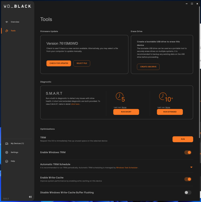 Para unidades de estado sólido SanDisk, um utilitário de serviço especial, o SSD Dashboard, foi lançado, que não decepciona nem com seus recursos nem com sua interface visual.