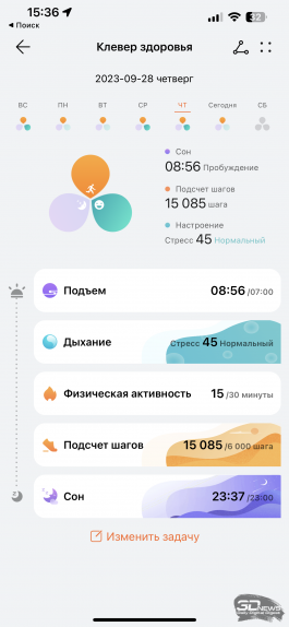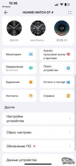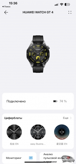 Para trabalhar com relógios, tradicionalmente é necessário o aplicativo HUAWEI Health, que se destina tanto à sincronização com o acessório quanto ao monitoramento dos dados básicos obtidos com sua ajuda. E também para alterar os mostradores do relógio e a já mencionada atualização. A aplicação faz bastante sucesso: interface amigável, boa russificação, muita informação acessível. Ele também possui uma seção de Vida Saudável com um plano de metas personalizado que você mesmo pode definir, e o relógio irá lembrá-lo de concluí-las e assim por diante.