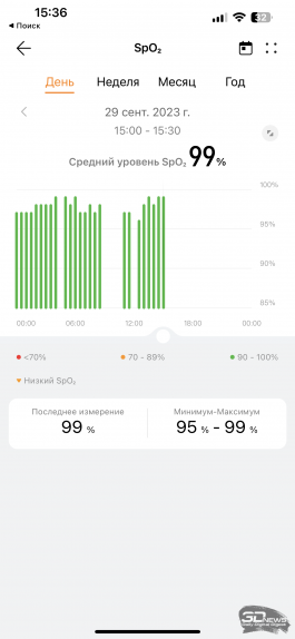 No entanto, existem habilidades suficientes mesmo sem isso: o relógio pode contar passos e pulso (com muita precisão) e também recomendar movimentos se você ficar sentado por muito tempo. Eles também podem determinar o nível de oxigênio no sangue, controlar o sono (e podem acordar em boa fase) e medir a temperatura da pele (não confunda com temperatura corporal e não tenha medo de grandes diferenças e valores). que são muito baixos em relação a 36,6 graus).