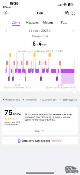 Também há algo novo. Em primeiro lugar, o controle da respiração, que estreou no mesmo HUAWEI Watch 4, agora funciona durante o sono: o relógio monitora como você respira. Em segundo lugar, o sistema de monitorização do ciclo menstrual foi atualizado. Em terceiro lugar, foi adicionada a aplicação “Be Fit”, que permite monitorizar as calorias com mais detalhe e fazer planos para perder ou ganhar peso.