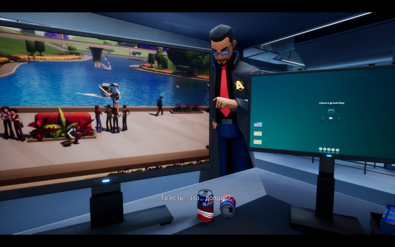Em qualquer caso, a falta de profundidade não estraga muito o jogo se você o perceber não como uma afirmação artística, mas como um trabalho divertido, embora com significado. American Arcadia diverte com muito sucesso: o ritmo é preciso; “mundo real” e reality shows se alternam de forma equilibrada; os enigmas são simples, mas nem sempre fáceis de resolver; a dinâmica da narrativa é excelente; as piadas são maravilhosas. O que é especialmente interessante é que o jogo consegue surpreender, até ao final – os autores encontram formas de quebrar a estrutura habitual e até vencê-la, quebrando a quarta parede.