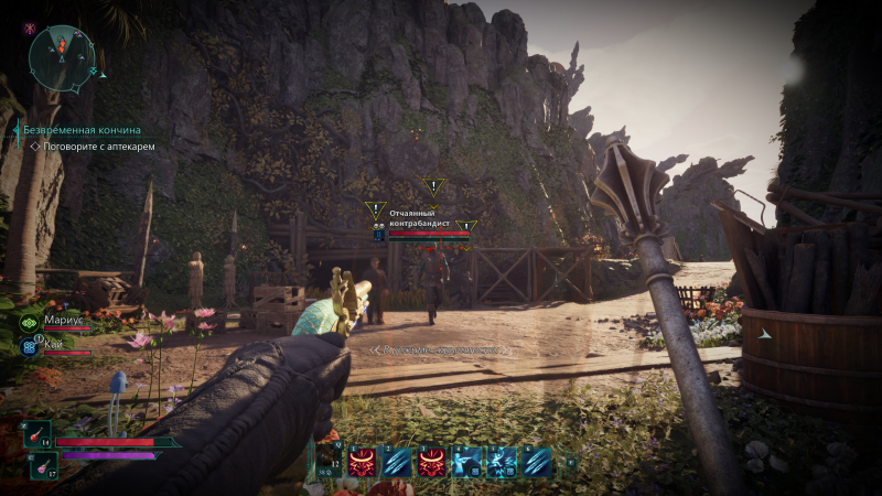 Mas antes que o império possa conquistar a fronteira, ele precisa resolver um grande problema: o Flagelo dos Sonhos. Uma praga terrível que deixa qualquer criatura viva louca, transformando-a em monstros florescentes. No sentido mais literal: tanto animais quanto pessoas ficam cobertos de flores, cogumelos e outras plantas até perderem completamente sua aparência. É estranho que eu não tenha visto uma comparação com o filme “Aniquilação” em nenhuma das críticas – para mim, essa foi a primeira analogia, e só depois os clickers de The Last of Us. Ao longo do jogo, tentaremos desvendar o segredo do desastre, enquanto manobramos entre diversas facções que dividem o poder na ilha.