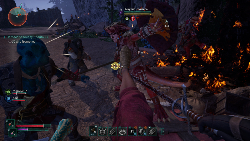 Cada estilo de combate é único e recompensador à sua maneira. Ao serem atingidos, os inimigos não só perdem saúde, mas também reagem a cada ataque. Quanto mais poderosa for a arma e maior for o indicador de força, mais pronunciada será a reação. Um golpe de adaga não impressionará um urso, mas um golpe de uma clava enorme será sentido até por um ogro de três metros. As armas de fogo fazem um estrondo muito alto, e a magia elemental é acompanhada não apenas por efeitos brilhantes, mas também impõe status negativos. Embora queimar seja um dano passivo simples (mas pelo menos o inimigo fica coberto de chamas), congelar é um movimento tático eficaz que pode imobilizar alguns inimigos para lidar com outros durante esse período.