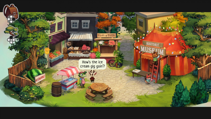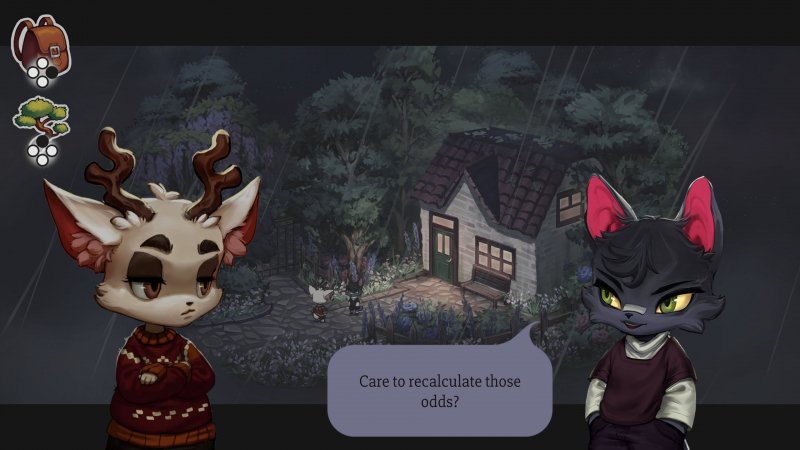 Tudo se limita a andar e falar. Sim, alguns objetos podem ser estudados e até ocasionalmente ganhar novos talismãs para isso, mas na grande maioria dos casos você apenas lê pequenos comentários sobre determinados objetos. Sem colecionáveis, sem segredos – apenas correndo por locais encantadores e se comunicando com animais antropomórficos. Em geral, isso é suficiente para esse jogo, e o tempo não é esticado por enigmas inadequados, mas ainda assim uma jogabilidade tão simples não permite que você dê ao jogo uma pontuação mais alta.