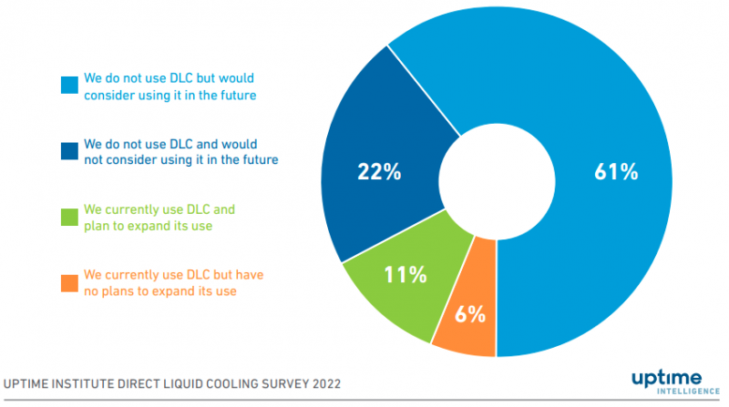 Com base nos resultados do inquérito de 2022, uma minoria de empresas utiliza sistemas avançados de refrigeração líquida, mas a grande maioria vê-os com atenção favorável e está a considerar a sua utilização no futuro.