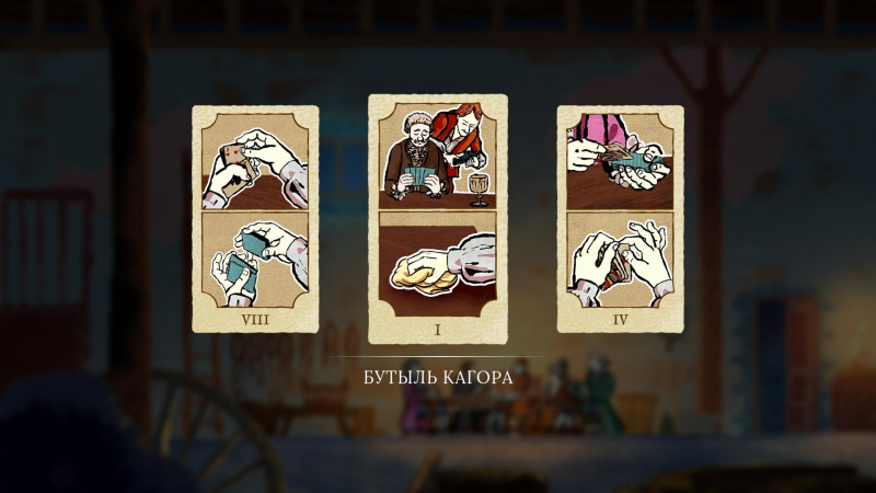 Os primeiros truques são ensinados antes mesmo dos trágicos acontecimentos. Como nosso herói não tem título de nobreza, ele permanece no papel de servo: distribui cartas, limpa as mesas e serve vinho para os convidados. São essas ações simples que ajudarão a contagem a acertar o jackpot repetidamente. Enquanto despeja vinho no seu oponente, você pode espiar as cartas dele e depois dar uma dica para a contagem (por exemplo, limpe a mesa de uma certa maneira).