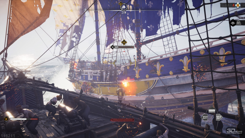 O mais triste é que o nosso pirata não sabe lutar – não é treinado para o combate corpo a corpo, nem, por exemplo, para disparar um mosquete. E seria bom se as batalhas não estivessem disponíveis nas cidades ou nas praias – isso pode ser explicado pelo fato de que a ênfase aqui está nas batalhas navais. Mas em Skull and Bones você não pode lutar nem durante os embarques! Quando um navio inimigo está fortemente danificado, você pressiona dois botões e apenas assiste a um pequeno vídeo no motor (o mesmo sempre).