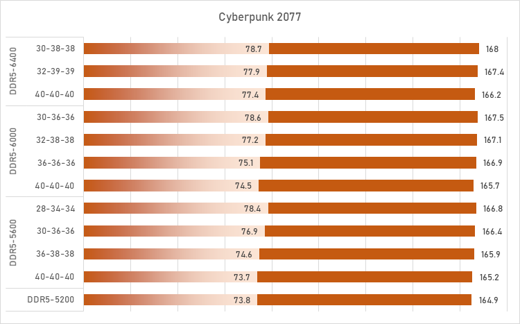 Tudo isso nos leva à conclusão de que ao escolher DDR5 para o Ryzen 7 7800X3D, é melhor focar em módulos com latências mais baixas CL28-CL30, e você deve prestar muito menos atenção à sua frequência.