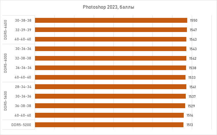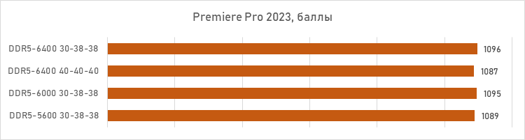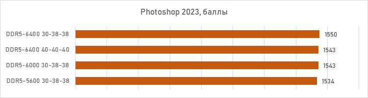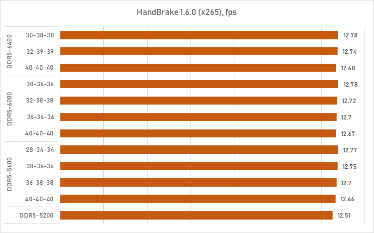 Tudo isso se reflete em aplicações reais, embora tarefas reais com uso intensivo de recursos não respondam muito sensivelmente à velocidade do subsistema de memória em sistemas baseados em processadores Ryzen 7000. No entanto, usando DDR5-5600, DDR5-6000 ou DDR5-6400 com baixo timings, você pode atingir o ganho médio de 2,5-3,5%, quando comparado com o desempenho obtido em um sistema com DDR5-5200. Ao mesmo tempo, a memória de alta velocidade com tempos altos parece bastante fraca. DDR5-6400 com latências de 40-40-40-76 ou DDR5-6000 com temporizações de 36-36-36-76 estão claramente perdendo opções, porque melhor desempenho pode ser alcançado por kits DDR5-5600 mais acessíveis com tempos de 30- 36-36-89 ou 28-34-34-89.