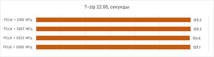 Assim, embora a frequência do Infinity Fabric possa de fato afetar o desempenho do subsistema de memória, aumentá-la deve ser feito com muito cuidado. Além disso, o critério para um overclock bem-sucedido deste barramento não deve ser a operação estável do sistema, que pode ser mantida apesar do overclock, mas um aumento no desempenho em uma ampla gama de tarefas realizadas nele.