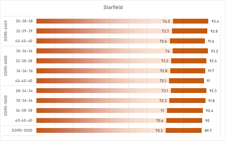 Esta abordagem é justificada por mais uma razão. Quase todos os módulos de memória com latência CL34 e inferior são baseados em chips SK Hynix A-die ou M-die. E são esses módulos que possuem o maior potencial de overclock, permitindo que usuários experientes melhorem ainda mais o desempenho por meio de configurações ajustadas. Além disso, isso se aplica não apenas à frequência DDR5, que, como descobrimos, quase não tem efeito no desempenho do Ryzen 7 7800X3D, mas também a todo o conjunto de temporizações.