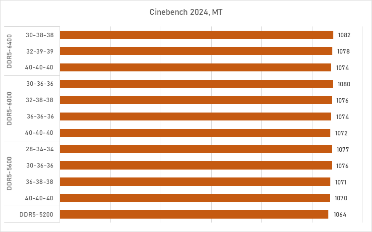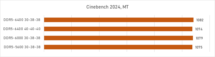 Tendo em conta tudo o que foi dito acima, os resultados dos testes não são surpreendentes. Problemas com o dimensionamento do desempenho à medida que a frequência da memória aumenta já são revelados em benchmarks sintéticos. Como pode ser visto nos resultados do CacheMem, aumentar a frequência operacional do DDR5 quase não leva a um aumento na taxa de transferência praticamente medida.