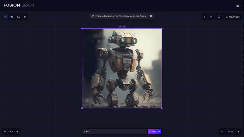 Não há nada mais simples: no campo de entrada principal (Prompt), inseriremos uma única palavra “robô” para começar.