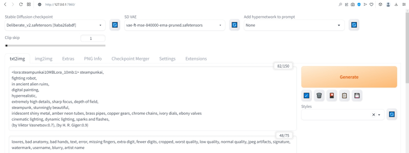 Mais de uma vez, chamamos o ponto de verificação “v-1-5-pruned-emaonly.safetensors” usado com o AUTOMATIC1111 (renomeado, lembre-se, para “model.safetensors”) como o ponto de verificação básico. Então, deve haver alguns derivados não básicos? Assim é: com base no modelo Stable Diffusion 1.5 original (apenas na versão podada, sem emaonly), os entusiastas fazem treinamento adicional percorrendo o sistema – da mesma forma que os bilhões originais de fotos viajaram – mais algumas centenas, ou milhares, ou quantos paciência e poder de computação. Essas fotos, selecionadas e anotadas adequadamente, expandem os horizontes de percepção, por assim dizer, do modelo: ele começa a produzir imagens no estilo steampunk com mais frequência sem prompts adicionais,