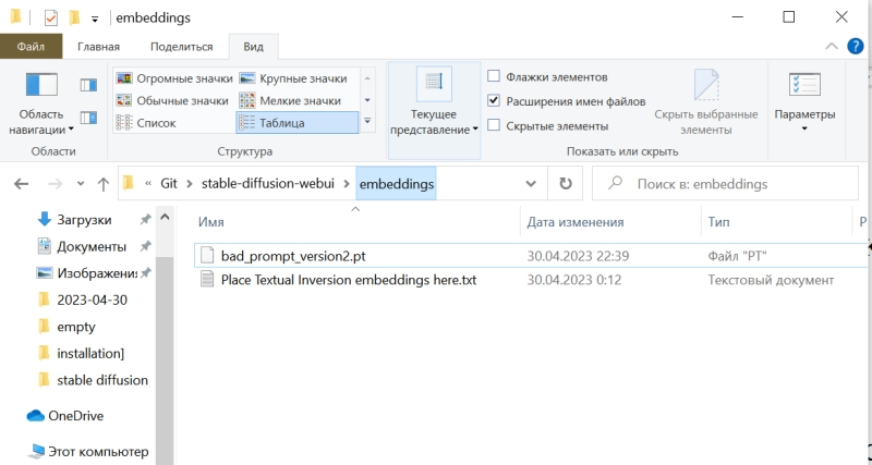 O próximo passo é otimizar a dica negativa. O conjunto padrão de negações que usamos até agora é bom em sua relativa universalidade, mas ainda não cobre toda a gama possível de deficiências que podem surgir ao transformar texto e imagens – especialmente ao desenhar robôs. baixe o mesmo site familiar, baixe a inversão textual da maneira usual, coloque o arquivo na pasta Preste atenção onde estão localizados os diretórios dos próprios modelos