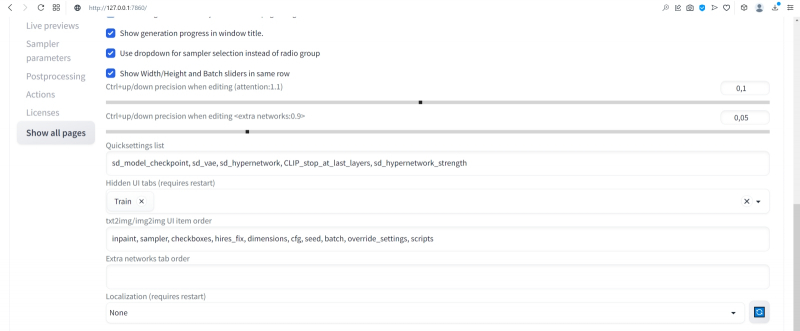 Mas primeiro, vamos ajustar um pouco a interface Nas configurações – – webinterface, você precisa abrir uma janela separando-a – esta é uma enumeração de quais controles serão movidos para o topo da página principal da interface. Inicialmente, havia um único parâmetro – sua presença nominal disponibilizou o menu suspenso no qual substituímos a linha