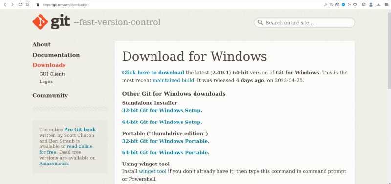 Então, para baixar o Git para Windows, você deve utilizar o repositório no site da própria plataforma.