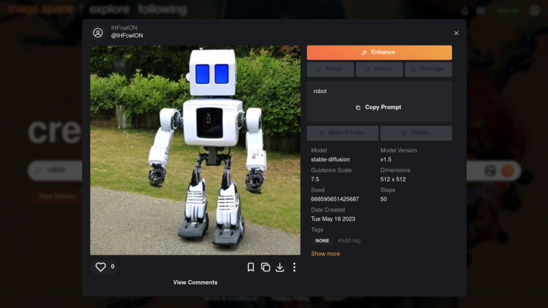 E essa imagem de um robô é o limite para visitantes gratuitos e anônimos do mage.space (fonte: captura de tela do mage.space)