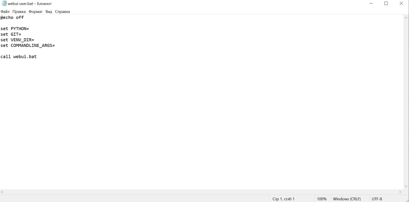 E agora, de fato, o momento emocionante: o primeiro lançamento do Stable Diffusion 1.5 com um checkpoint básico no seu PC local! Para fazer isso, agora que todo o software necessário foi baixado e preparado, no “Explorer”, onde o diretório stable-duffusion-webui está aberto, você precisa clicar duas vezes com o botão esquerdo do mouse no webui-user.bat arquivo. Uma janela de terminal será aberta, na qual serão exibidas mensagens de serviço sobre as operações realizadas pelo sistema. Primeiro, ela precisará fazer uma série de ajustes no ambiente de software, então o primeiro lançamento pode demorar de 5 a 10 minutos – mas no futuro tudo acontecerá muito mais rápido.